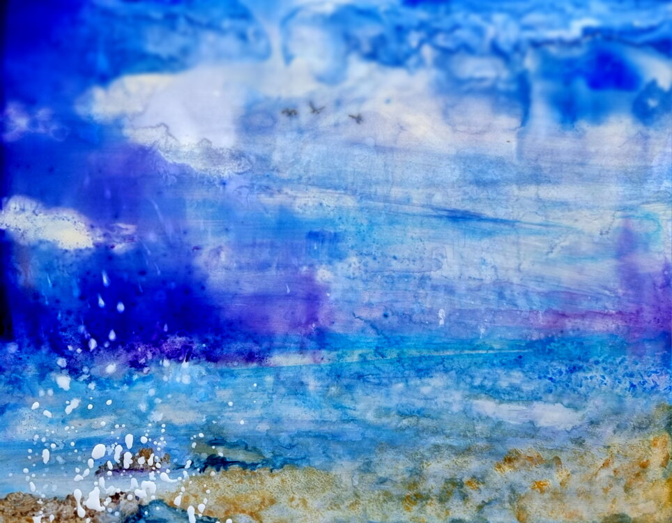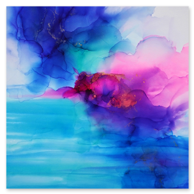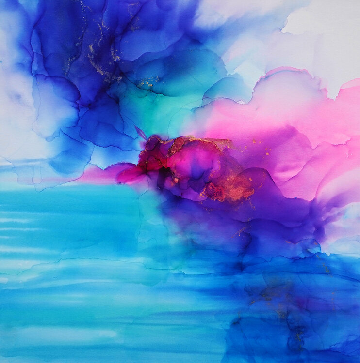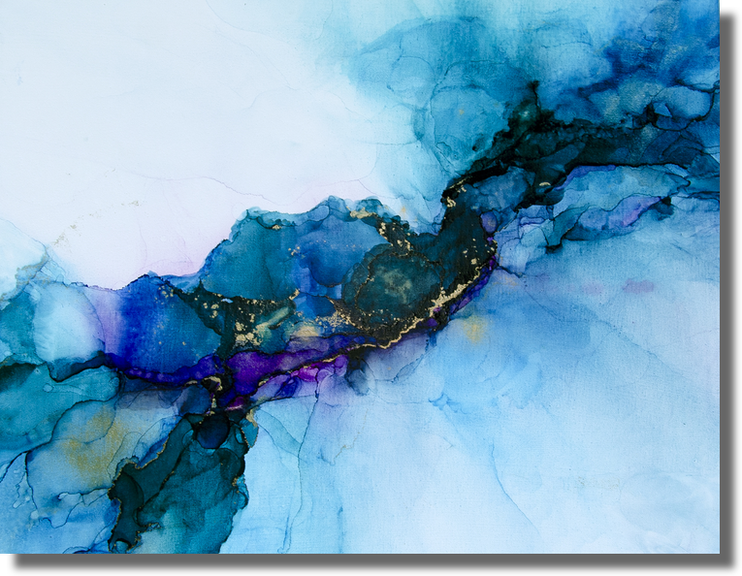 “My abstract work in acrylic and alcohol ink is driven by instinct, experimentation and a deep fascination with color and composition. I begin with a strong structural foundation — often using classical forms like diagonals or S-curves — then allow the materials to guide the rest. Alcohol ink offers fluidity and surprise, while acrylic provides control and texture. Together, they create a balance between spontaneity and design. I’m constantly experimenting with paint formulas and tools, using palette knives, sticks and even toothpicks to manipulate the surface. Each piece is a visual journey — an emotional landscape built on value, rhythm and movement. I don’t start with a fixed outcome in mind; instead, I respond to the energy of the process, layer by layer. These abstracts are about freedom, balance and discovery. They invite the viewer to feel rather than interpret, to get lost in color and to find structure within the chaos.” — LINDA MCCORD