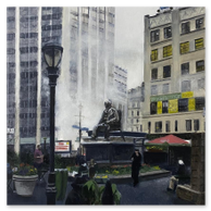 “As an artist, I want the viewer to share my interest in everyday objects that are unique to ‘the city’. All too often, people may find themselves rushing from place to place without noticing the beauty, history, diversity and culture that surrounds them. They may not have an opportunity to appreciate the street performer, the antiquated storefront, the interesting window reflection — things that contribute to making urban living worthwhile and enriching. I also strive to capture remnants of the ‘old’ city on canvas before they become fleeting memories — the city of five-story walk-ups, ornamental windows and hand-painted signs. I think it’s important to remember these things. My art allows people to ‘slow it down’. It gives the viewer a chance to focus on some of the overlooked details that are an integral part of their daily lives; hopefully viewers will come away with a greater appreciation for their surroundings and share my love of ‘the city’.”
