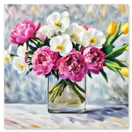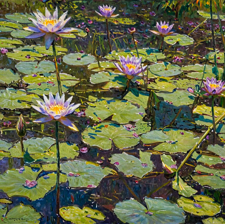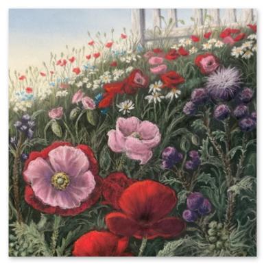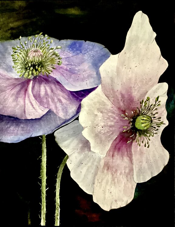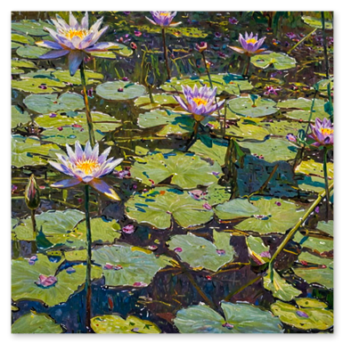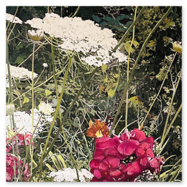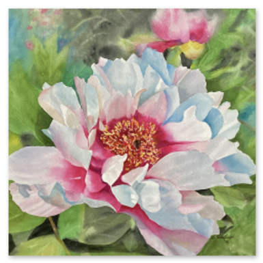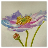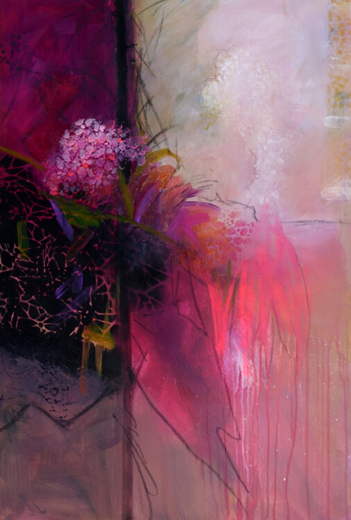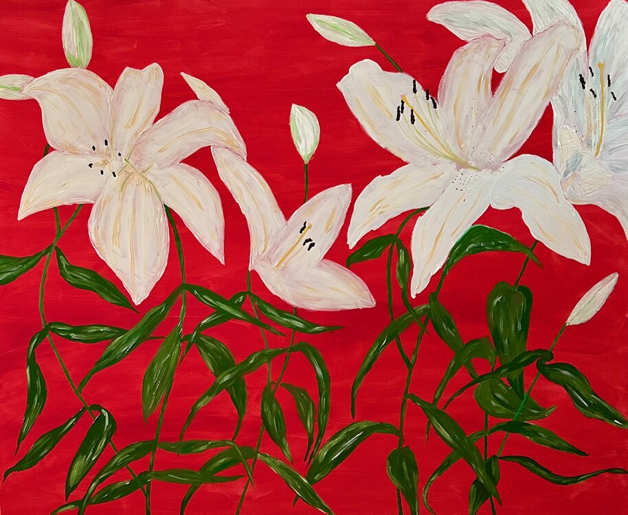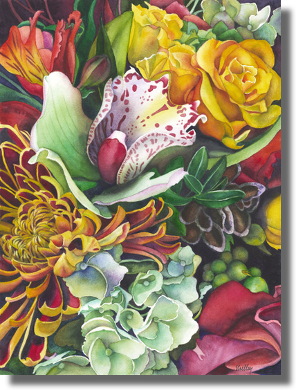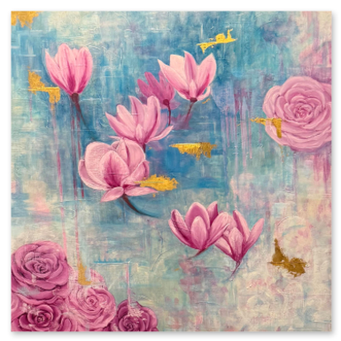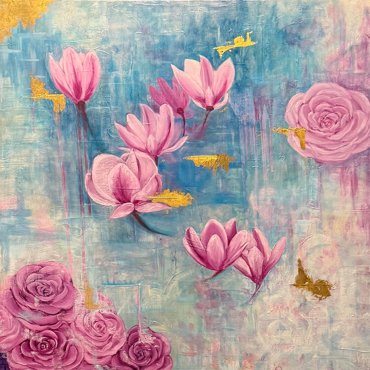 “My passion for painting flowers all started with a gift of a floral arrangement. Photographing it up close, I discovered how the slightest movement of the camera created an entirely new composition. I was fascinated by the amazing color and shape of each petal and the creation of a bold composition.”