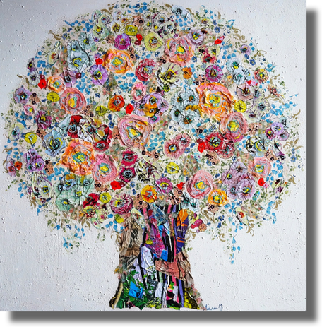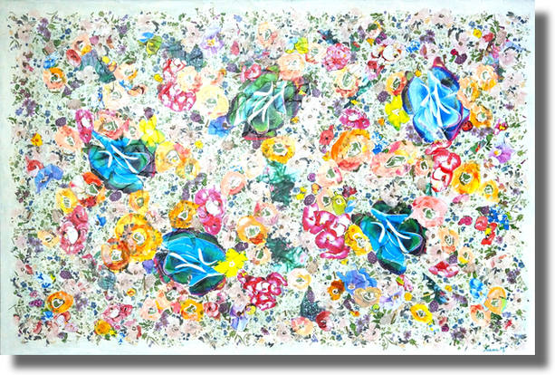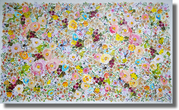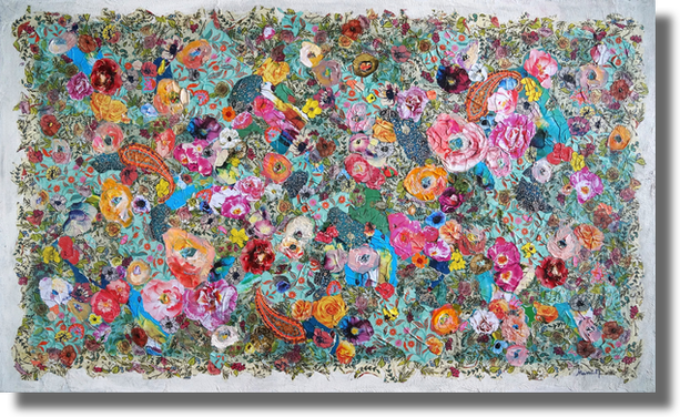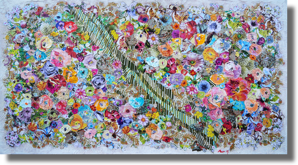 “I invite the viewers to walk in my gardens, enjoy the magic and the power of the flowers — to be captivated by colors and fragility. I love the visual and emotional effects of rich colors and highly textured areas, especially on large surfaces.”