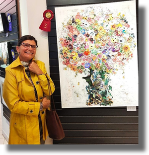 She is a self-taught, mixed-media collage artist and an elected member of the Colour and Form Society. Her career as a pharmacist contributed to her genuine creativity, which has grown over time. She returned to a full-time art practice in 2017. As a member of the CFS, she was awarded 3rd place in 2022 for her landscape Lake Shore View 1. She won Best In Show in 2020 for her landscape On A Foggy Day at Gallery Ring and in 2024, she won Best In Show in mixed-media at Aurora Juried Art Show. She is represented by Bloom Gallerie in Montreal with her floral compositions which are owned by collectors from Canada, US, Hungary and Romania.