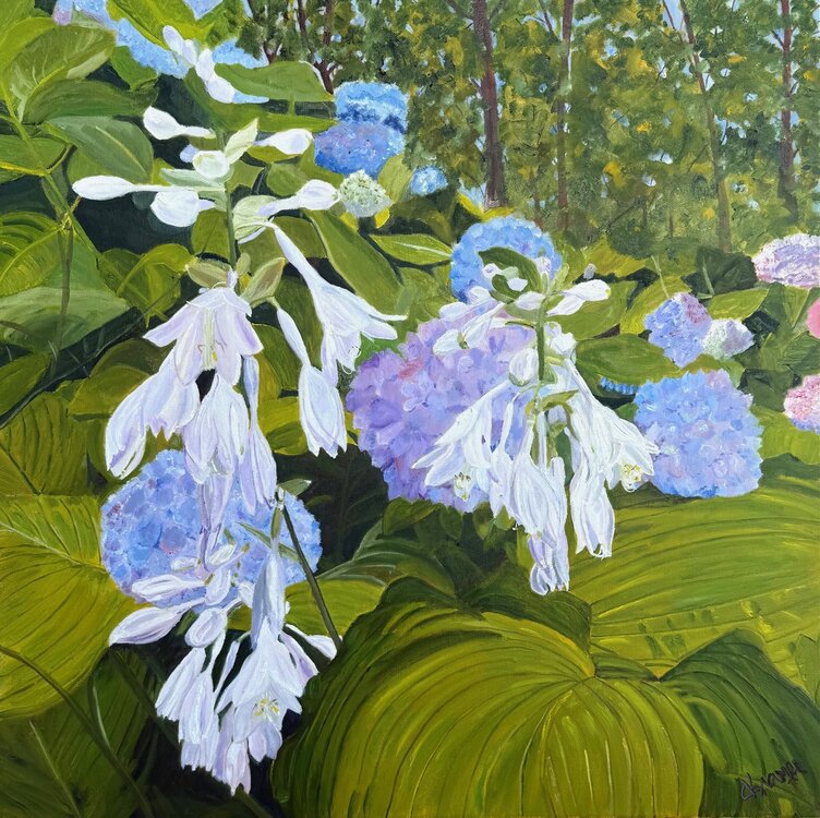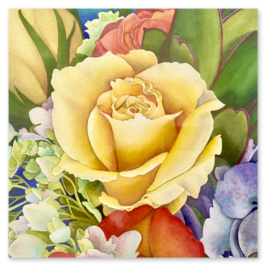 “My passion for painting flowers all started with a gift of a floral arrangement. Photographing it up close, I discovered how the slightest movement of the camera created an entirely new composition. I was fascinated by the amazing color and shape of each petal and the creation of a bold composition.”
